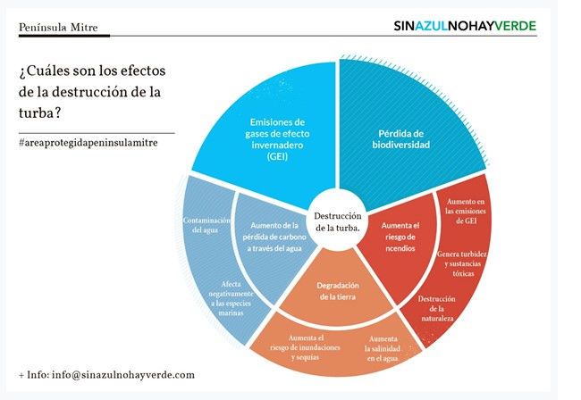 Las turberas almacenan en el mundo cerca del 30% del carbono de los suelos en tan solo un 3% de la superficie terrestre, el doble de lo almacenado en la biomasa vegetal. Además, albergan el 10% del agua dulce del planeta. En Argentina, el 95% de las turberas se encuentran en la provincia de Tierra del Fuego, concentradas en Península Mitre, lo que evidencia la necesidad de conservar este territorio.